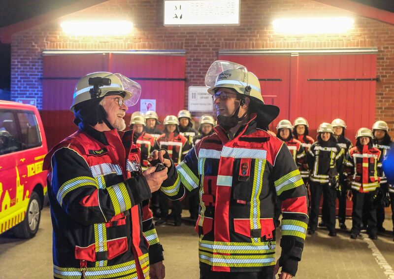 Oberbürgermeister Dr. Fabian Geyer ließ es sich nicht nehmen, spontan in Feuerwehrschutzkleidung zu erscheinen und das Fahrzeug persönlich zu übergeben. Begleitet wurde er von Mario Quade, Stadtwehrführer des Stadtfeuerwehrverbandes Flensburg, Carsten Sörensen, Vorsitzender des Ausschusses für Bürgerservice, Schutz und Ordnung, sowie Kevin Andresen, Leiter Technik der Berufsfeuerwehr.